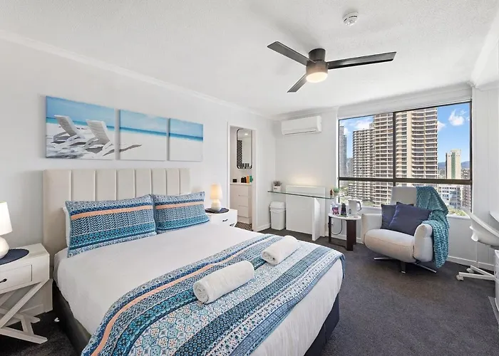 Geniet van uw verblijf in 1-slaapkamer Beach Studio Ocean Views Level 17 Pool Gym Sauna Gold Coast, gelegen in het centrum van Gold Coast, op 5 minuten wandelen vanaf de Surfers Paradise Beachfront Markets. Bij het 30 m² grote appartement kunnen gasten loungen bij een privézwembad of een bezoek brengen aan het SkyPoint Observation Deck, dat op 650 meter ligt.